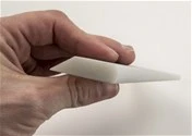 The white ceramic side is for finishing an edge to razor sharpness. This very hard and smooth ceramic material will leave a fine, close to mirror polish for a refined cutting edge. The surface it leaves on the metal is comparable to a Hard Black Arkansas, but this White Ceramic will work more quickly than an Arkansas, even on very hard steels.